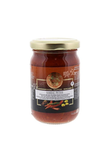 Ingrediënten: 58% gemalen rode pepers (zout), petehbonen, gemalen ui (sulfiet), suiker, zonnebloemolie, paprikapoeder, laos, sereh, garnalenpoeder (schaaldieren), conserveermiddel E202, E211, E260.